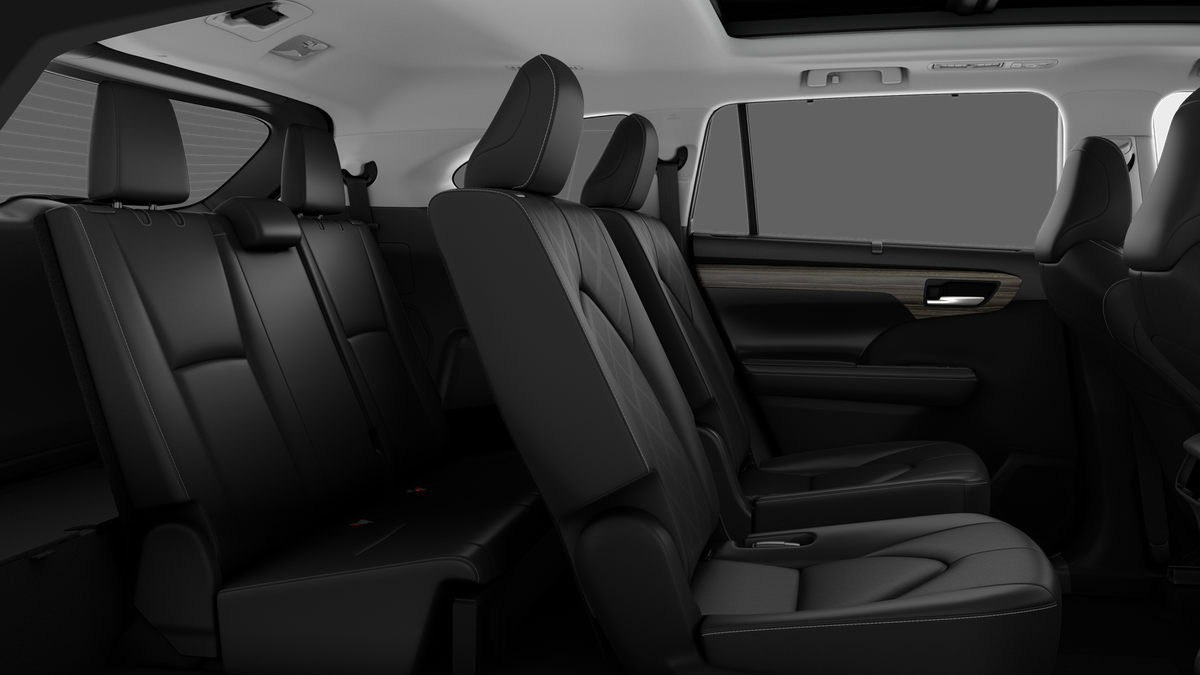 • 7-passenger seating with second-row fold-down captain's chairs and fold-down inboard armrests, adjustable headrests and two cup holders mounted on the floor; and 60/40 split, fold-flat third-row seats with sliding headrests and recline function