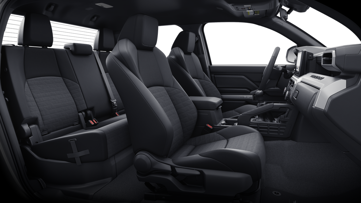 TRD Sport Premium Package (M/T) — includes SofTex®-trimmed seats with heated and ventilated 8-way power-adjustable front seats, leather-trimmed heated steering wheel, 14-in. Toyota Audio Multimedia display, Panoramic View Monitor (PVM), 39 JBL® 30 Premium Audio with JBL® FLEX 31 portable speaker, moonroof, Qi-compatible wireless charging, 46 dual zone automatic climate control, Front and Rear Parking Assist Sonar, 58 prewired auxiliary switches, digital rearview mirror, Integrated Trailer Brake Controller (ITBC), 29power open/close tailgate, 45 61 Digital Key 16 capability, 400W/120V 1 AC power inverter, and power horizontal rear window