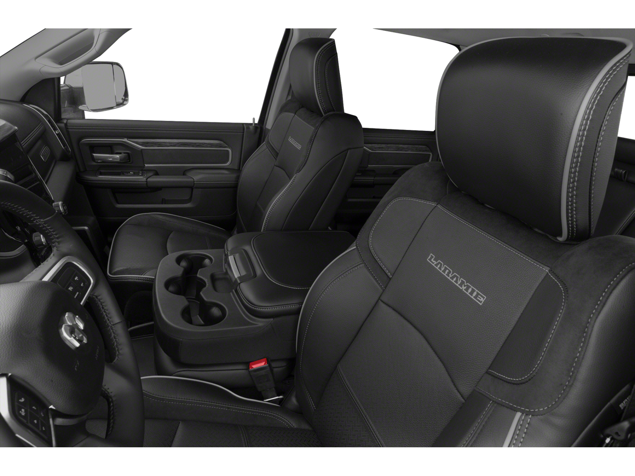 The Laramie Level 1 Equipment Group adds a host of premium features, including remote tailgate release, auto high beam headlamp control, blind spot and cross path detection, and power-adjustable, heated, and ventilated front seats. The Towing Technology Group further enhances the truck's capabilities, with features like a surround-view camera system and trailer reverse guidance.