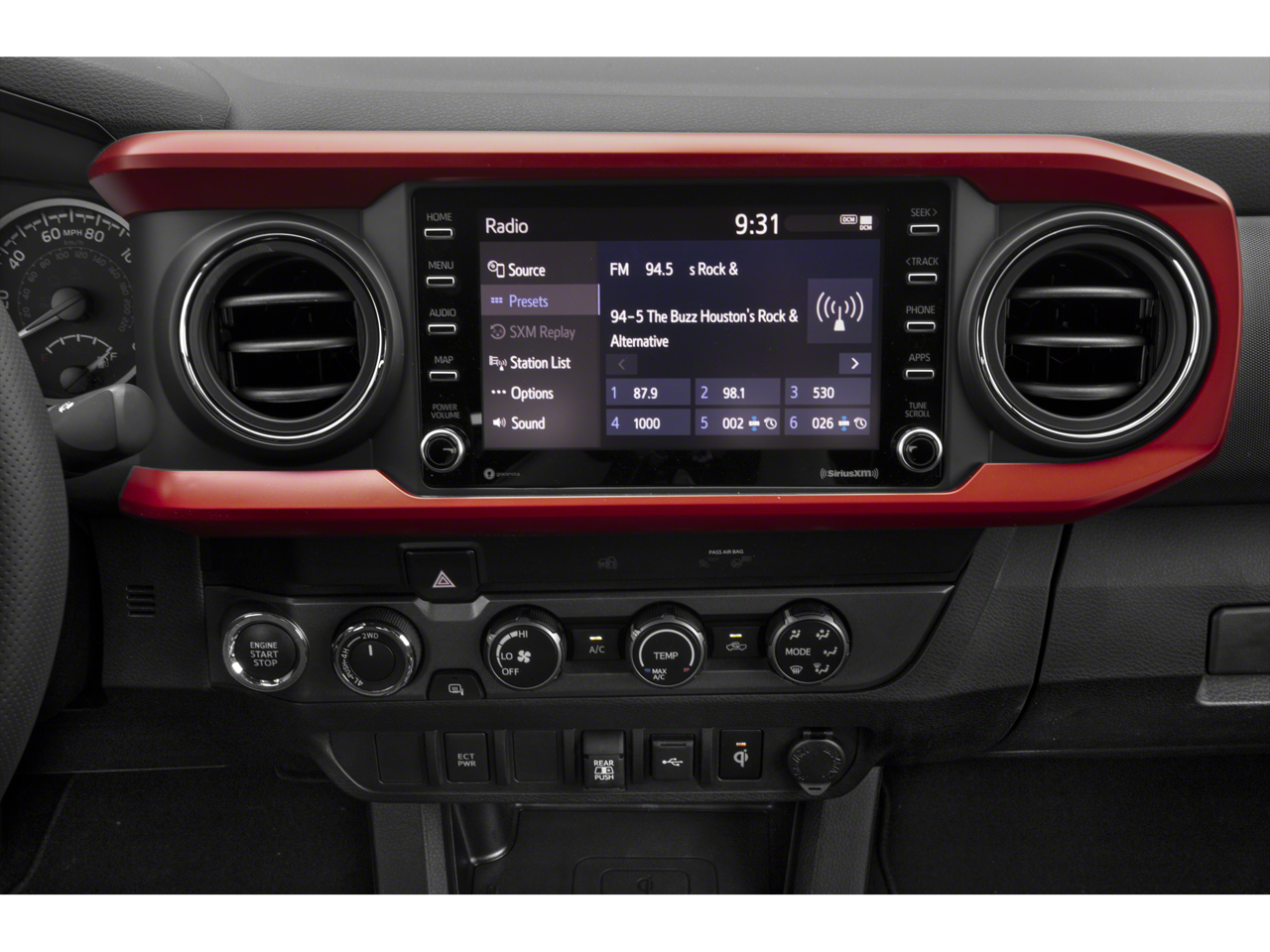 4WD, 120V/400W Deck Mounted AC Power, All Weather Floor Liner & Door Sill Protector (TMS), Apple CarPlay/Android Auto, Auto High-beam Headlights, Auto-Dimming Rearview Mirror w/HomeLink, Automatic temperature control, Blind Spot Monitor w/Rear Cross Traffic Alert, Color-Keyed Overfenders, Emergency communication system: Safety Connect (1-year trial), Engine Immobilizer, Exterior Parking Camera Rear, Fabric Seat Trim, Front Door Smart Key System w/Push Button Start, Front dual zone A/C, Front fog lights, LED Headlights w/Black Bezel LED Fog Lights, Power driver seat, Power Sliding Rear Window w/Privacy Glass, Radio: Premium JBL Audio w/Dynamic Navigation, Remote keyless entry, Steering wheel mounted audio controls, Telescoping steering wheel, Tilt steering wheel, TRD Sport Package, USB Power Port (TMS).